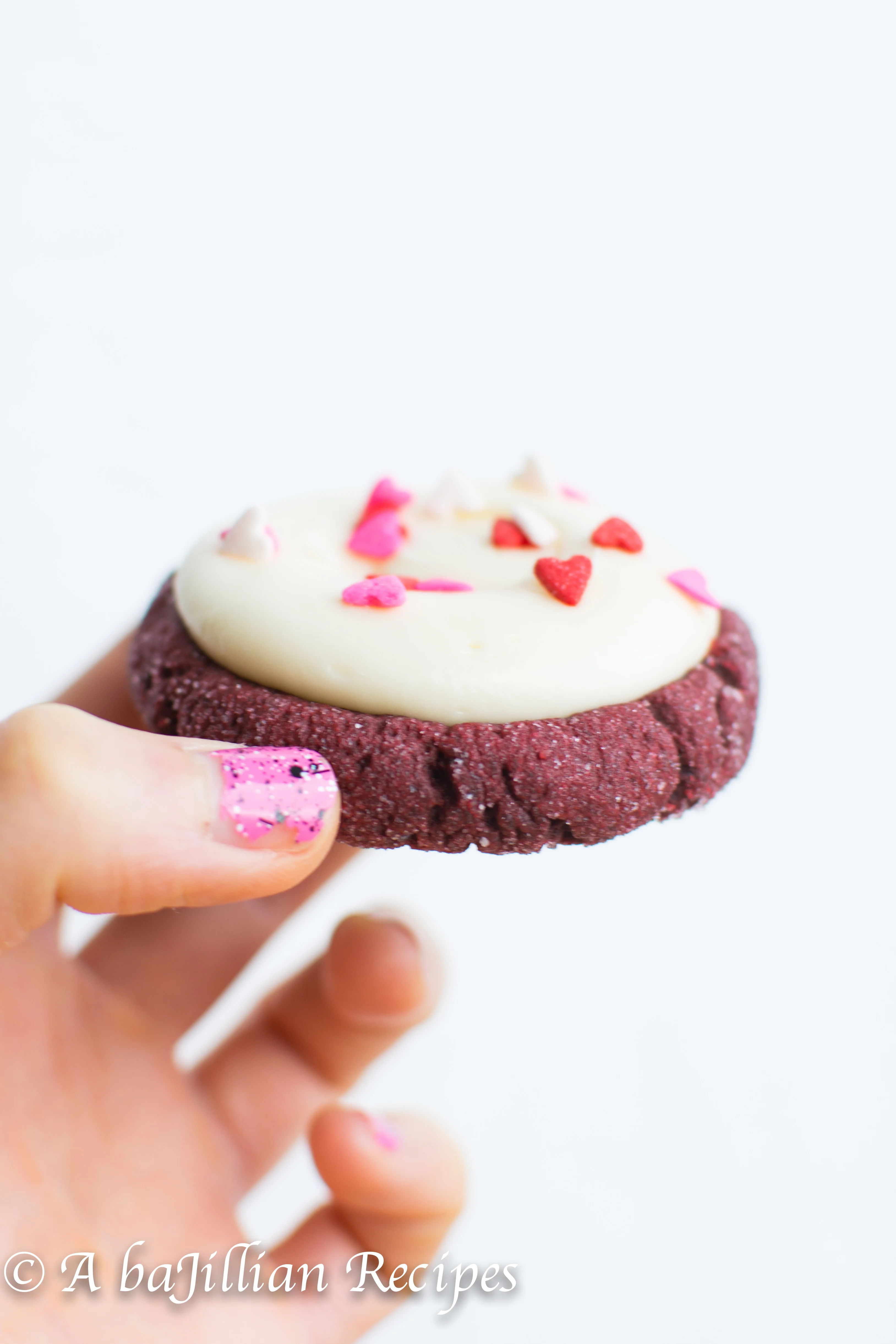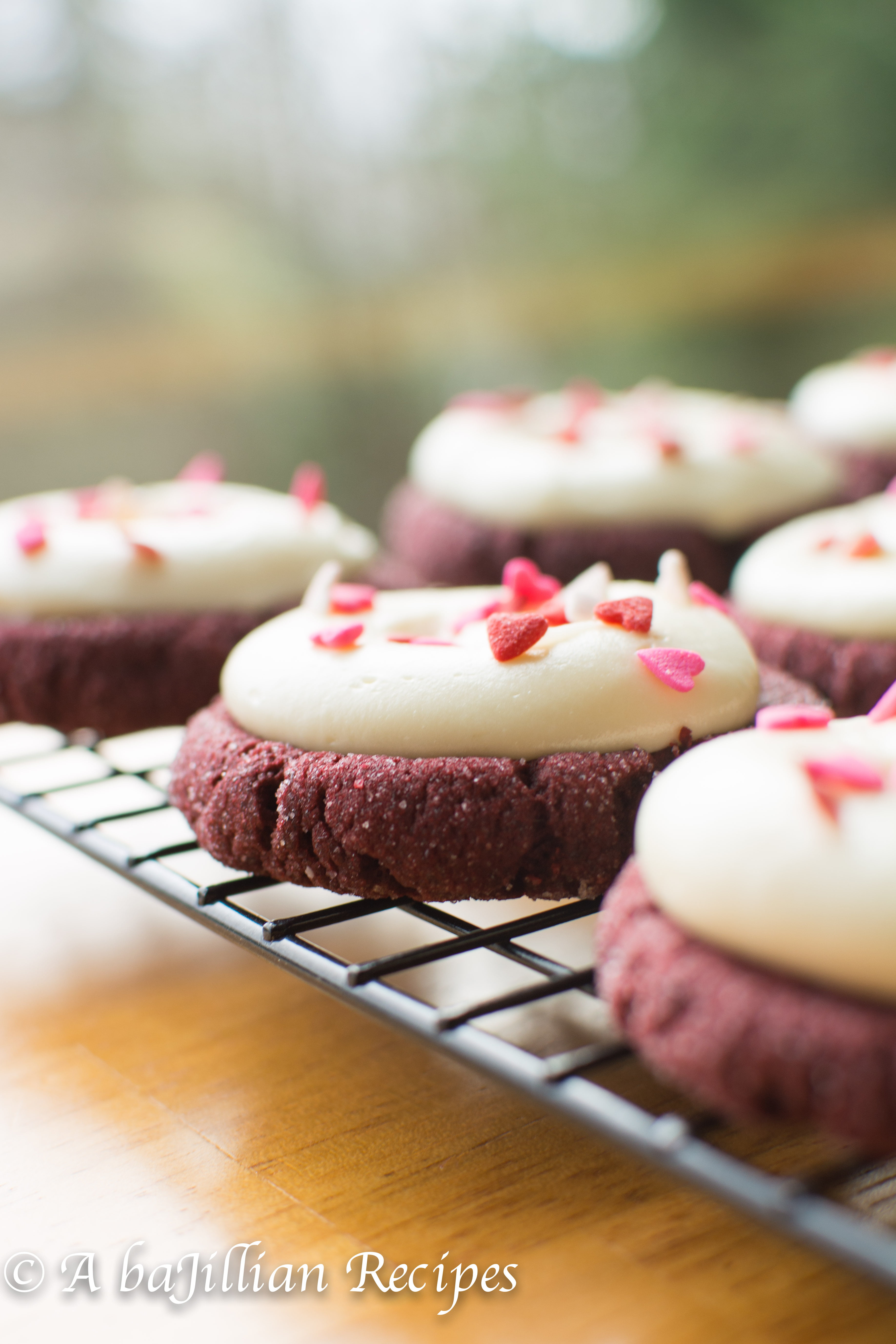 They’ve got that delicately sweet cocoa flavor along with that classically deep, vibrant shade of red. I ended up adding a full tablespoon of red dye to get the color that I wanted. However, feel free to reduce that amount if it sounds like too much. Mind you, this recipe makes around 27 cookies, so one tablespoon equally distributed among that many cookies shouldn’t be an issue. Unless if you decide to eat the entire batch in one sitting…