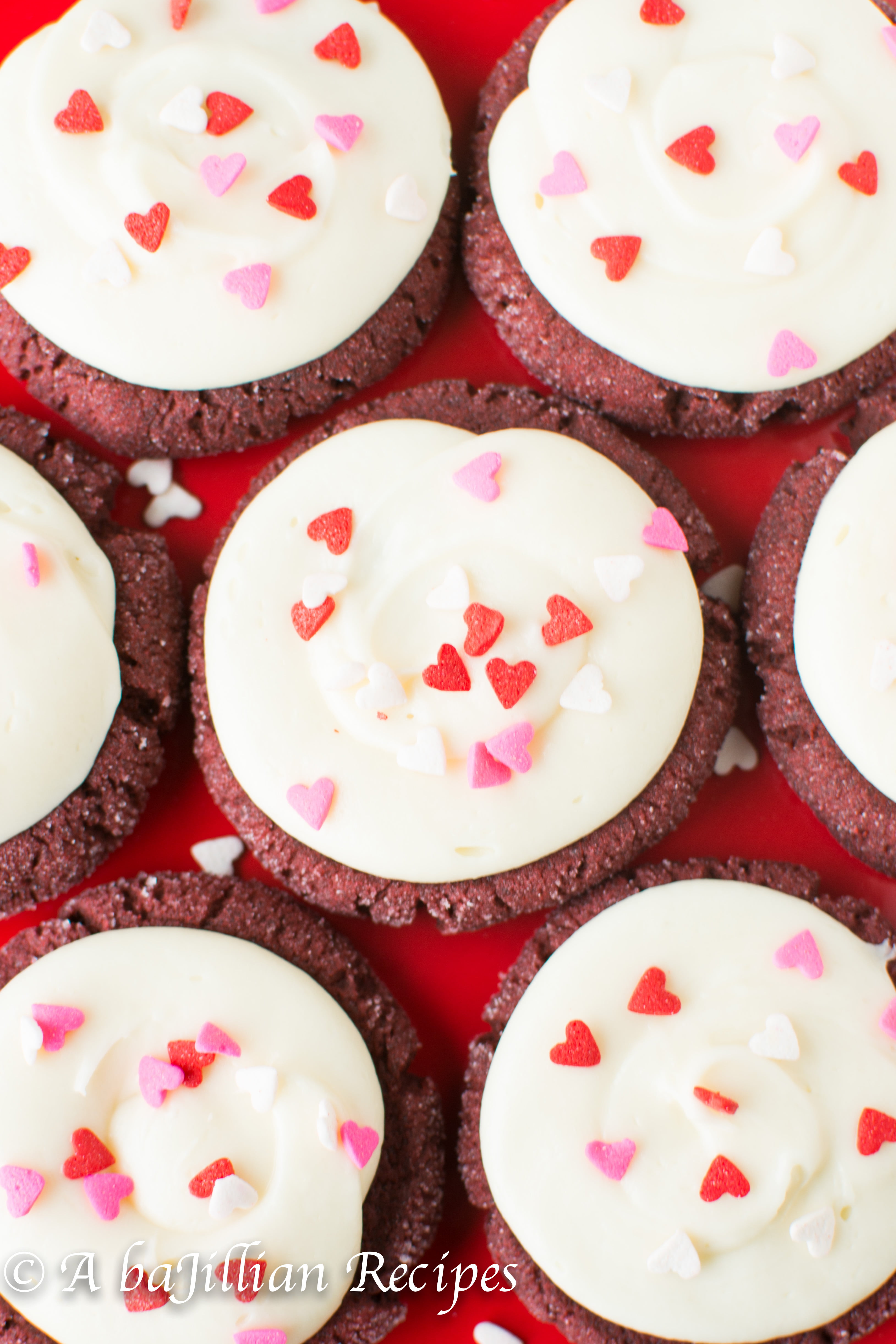 Soft, thick, and slightly chewy Red Velvet sugar cookies slathered in rich, velvety cream cheese frosting!