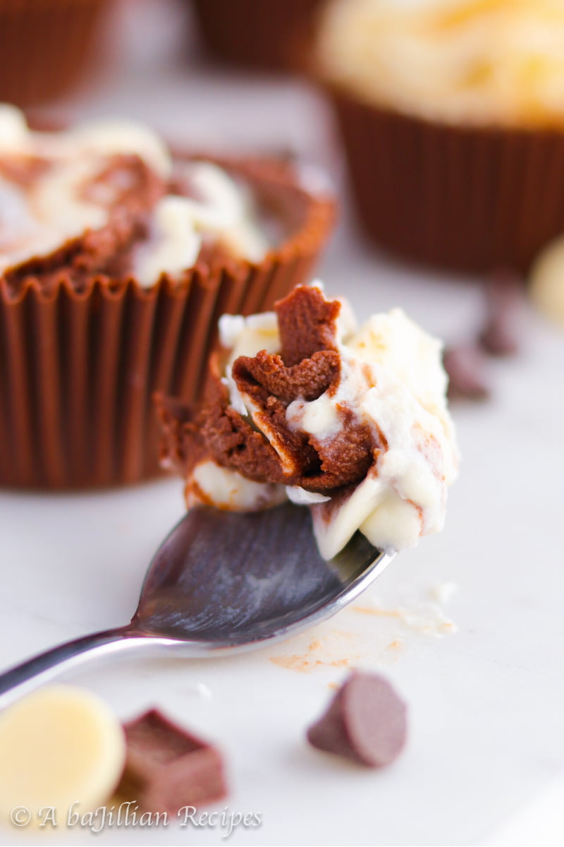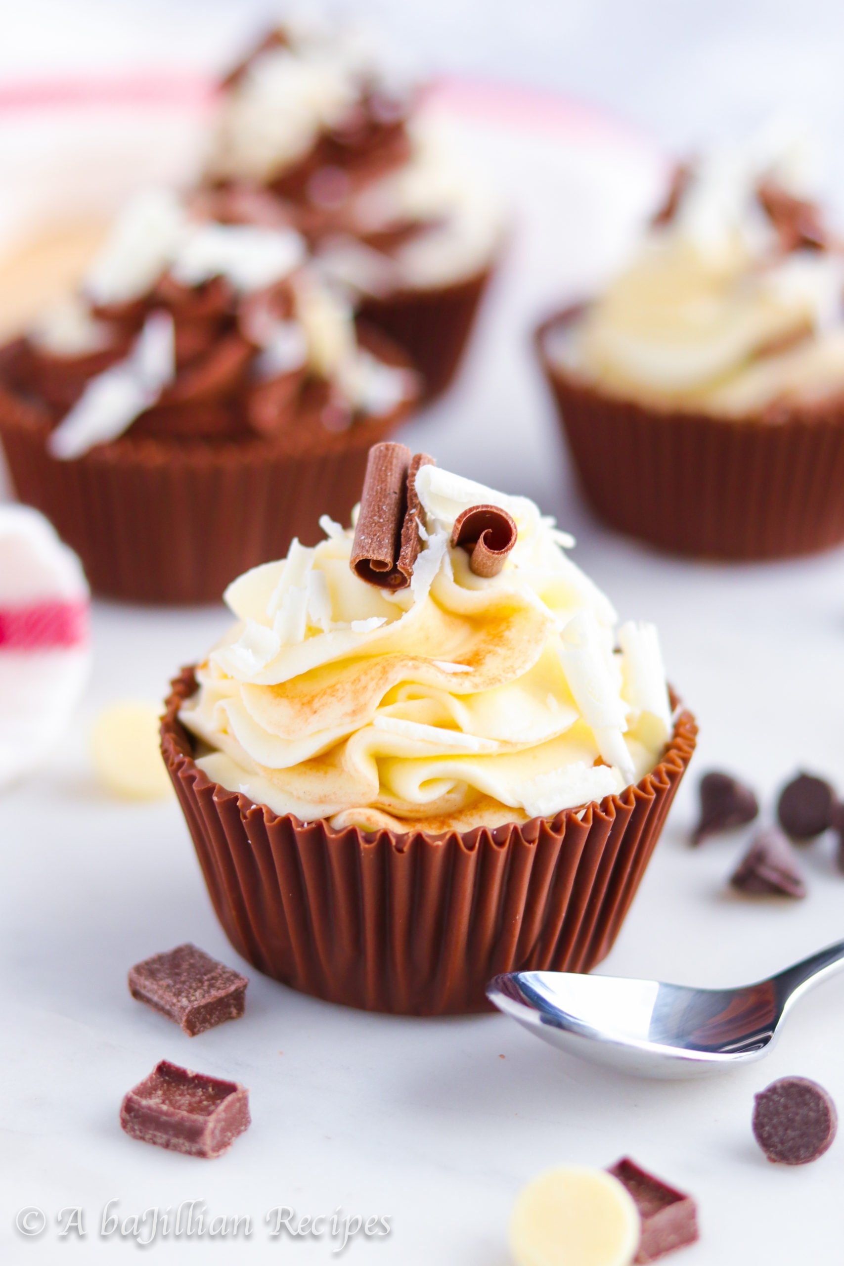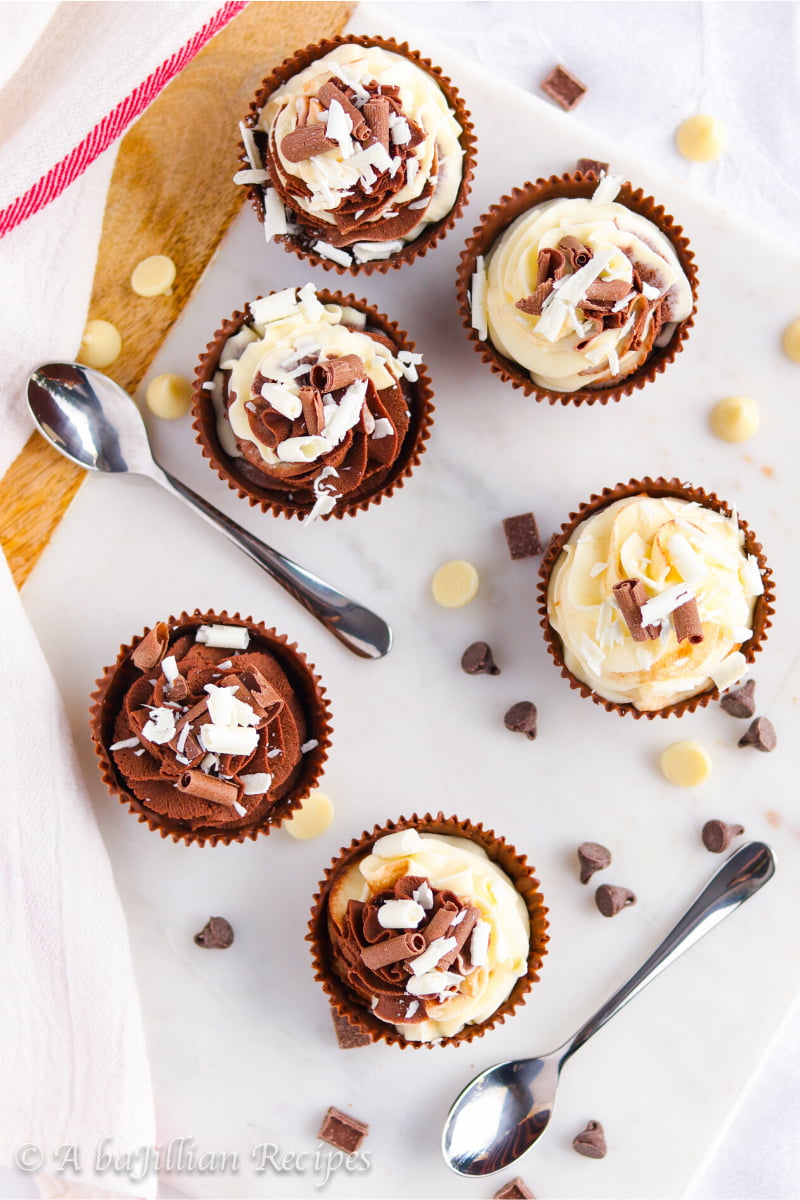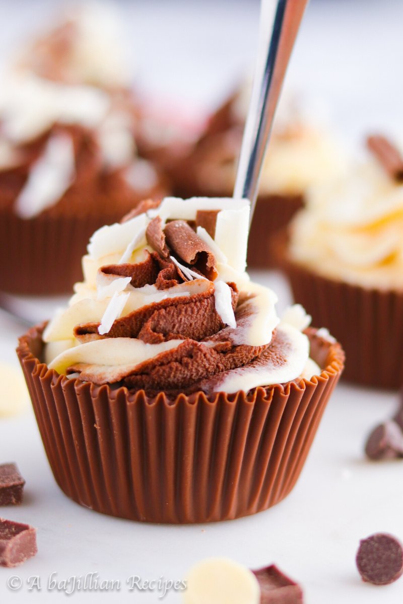 While this technique won’t result in the perfect ratio of white to dark chocolate mousse EVERY single time, to me, that’s actually the beauty of it. My first go-around ended up with just dark chocolate mousse. After the first try, I was able to get some of the white chocolate mousse to come through, which gave it kind of a marbled appearance. After the first two try’s, I was finally able to get a more equal distribution of the white and dark chocolate. But whether you end up with a cup of mostly dark chocolate, mostly white chocolate, or an even ratio, I believe the different/uneven distributions add a more sophisticated look to the whole presentation.