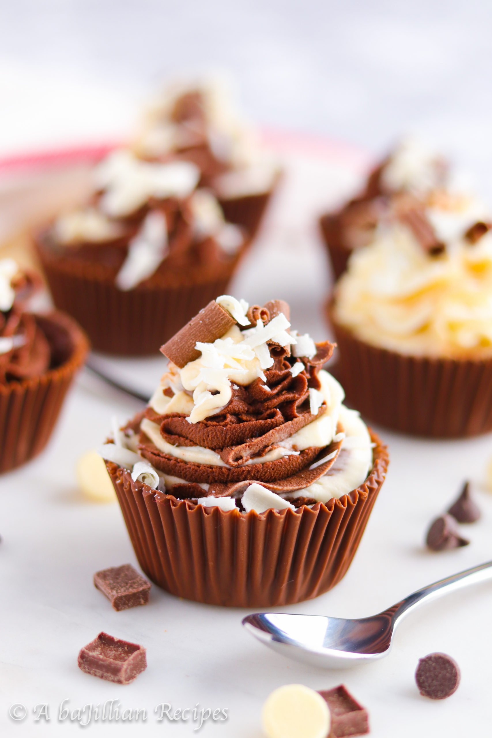 - Heat the chocolate in the microwave until smooth and melted. Pour about 1 tablespoon of chocolate into a paper cupcake liner, then use a spoon to push the chocolate along the bottom and up the sides of the liner. Place into a cupcake pan. Repeat with the rest of the melted chocolate. Place pan in the freezer until the chocolate has set, about 10-15 minutes. Remove pan from the freezer, then peel the paper liner off of the chocolate cups.