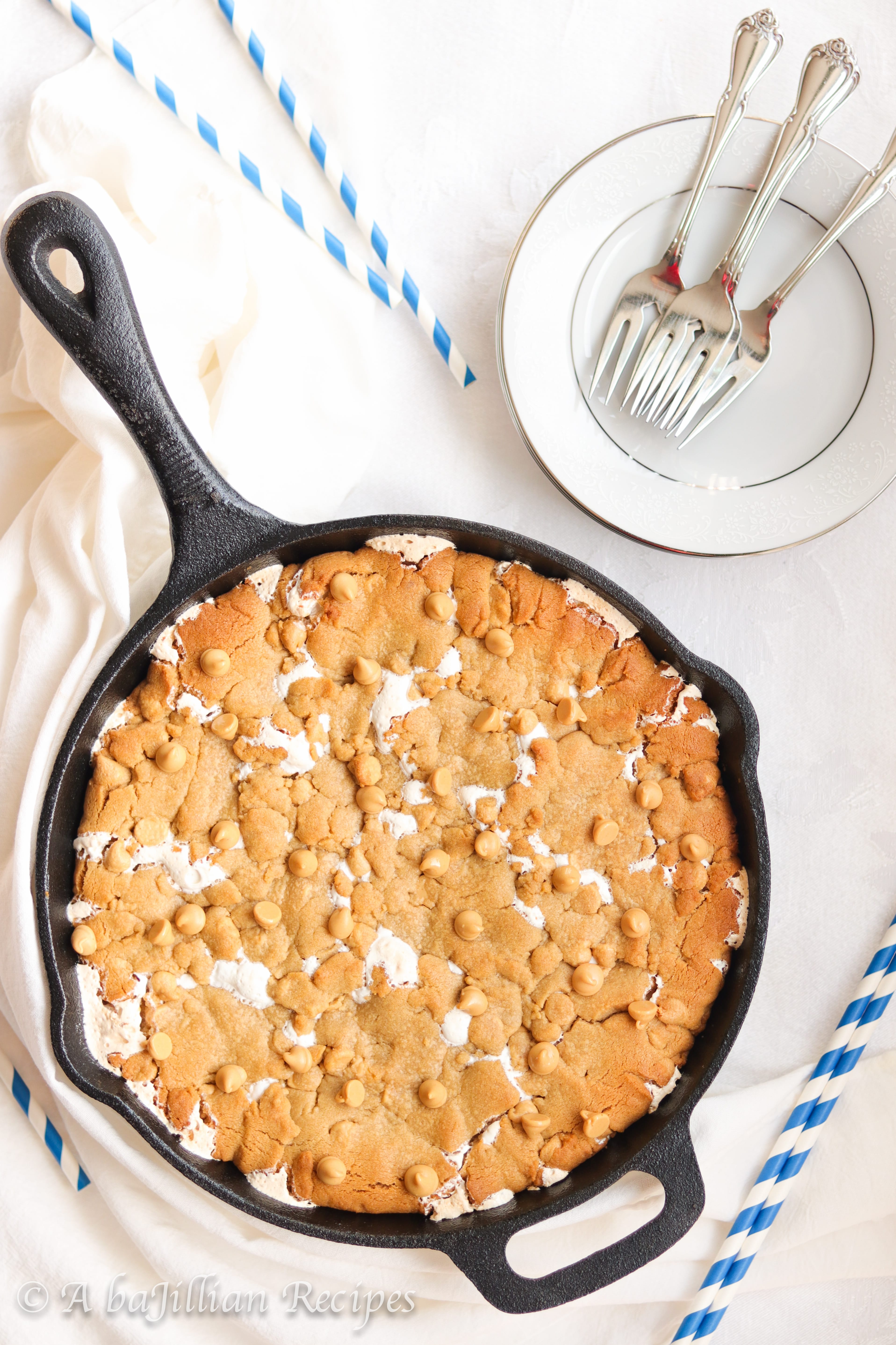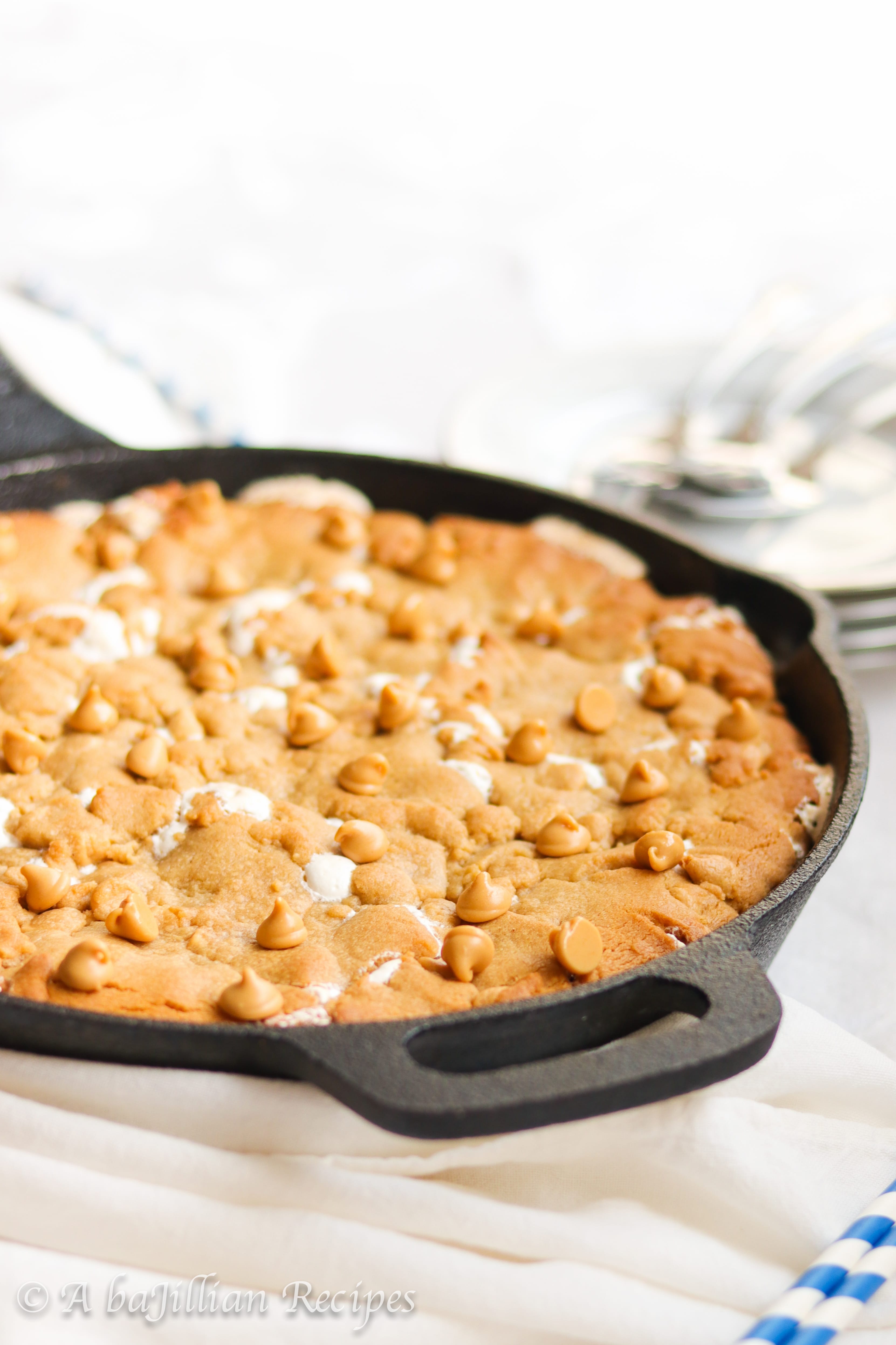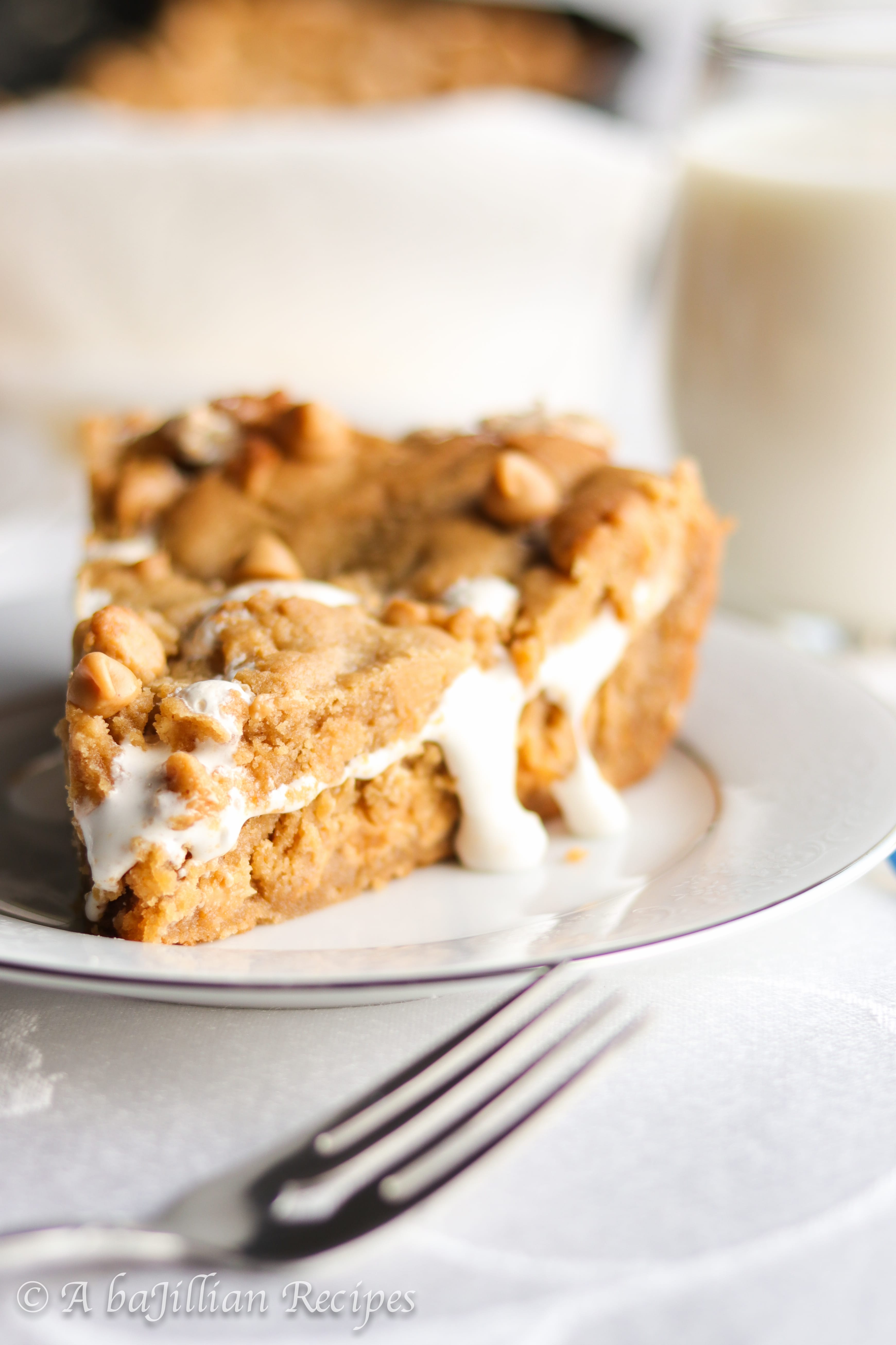 One massive soft and doughy peanut butter cookie loaded with peanut butter chips and ooey gooey marshmallow fluff!