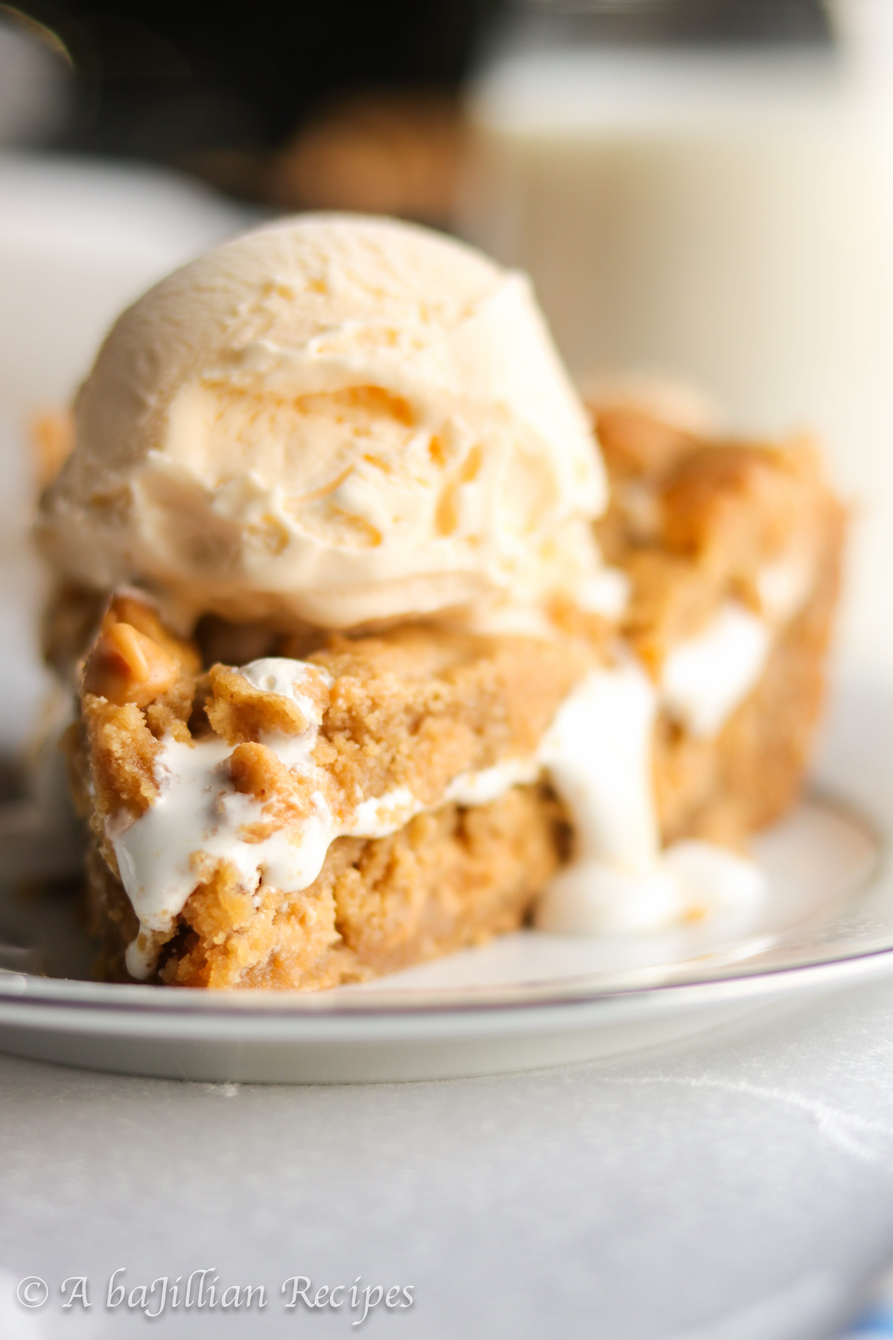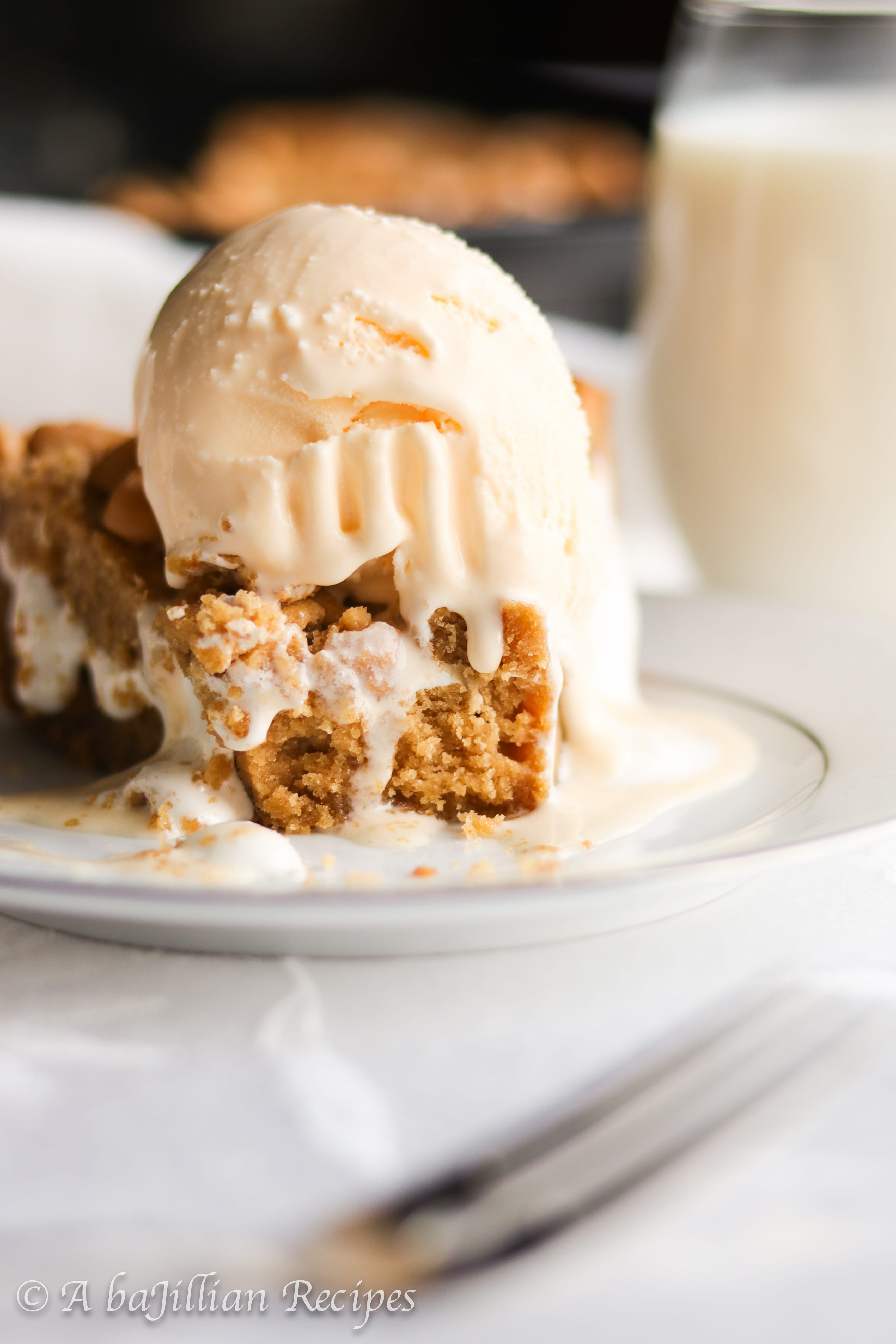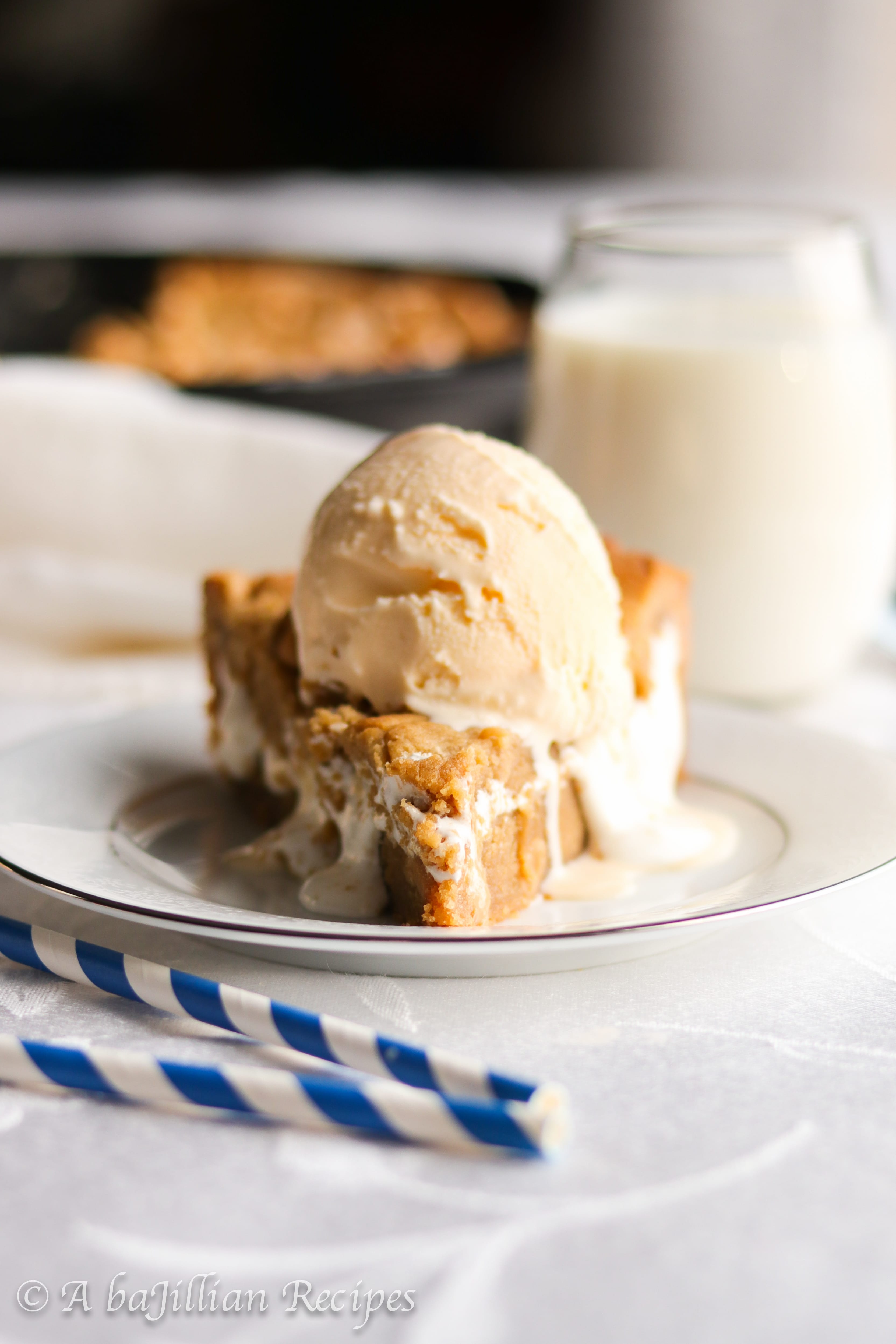 While it’s totally optional to top your pizookie with a scoop of ice cream, I HIGHLY recommend you do it. It’s kind of like cookies and milk. You need something cold and refreshing to balance out the richness of the cookie, and ice cream does that SUPERBLY well.