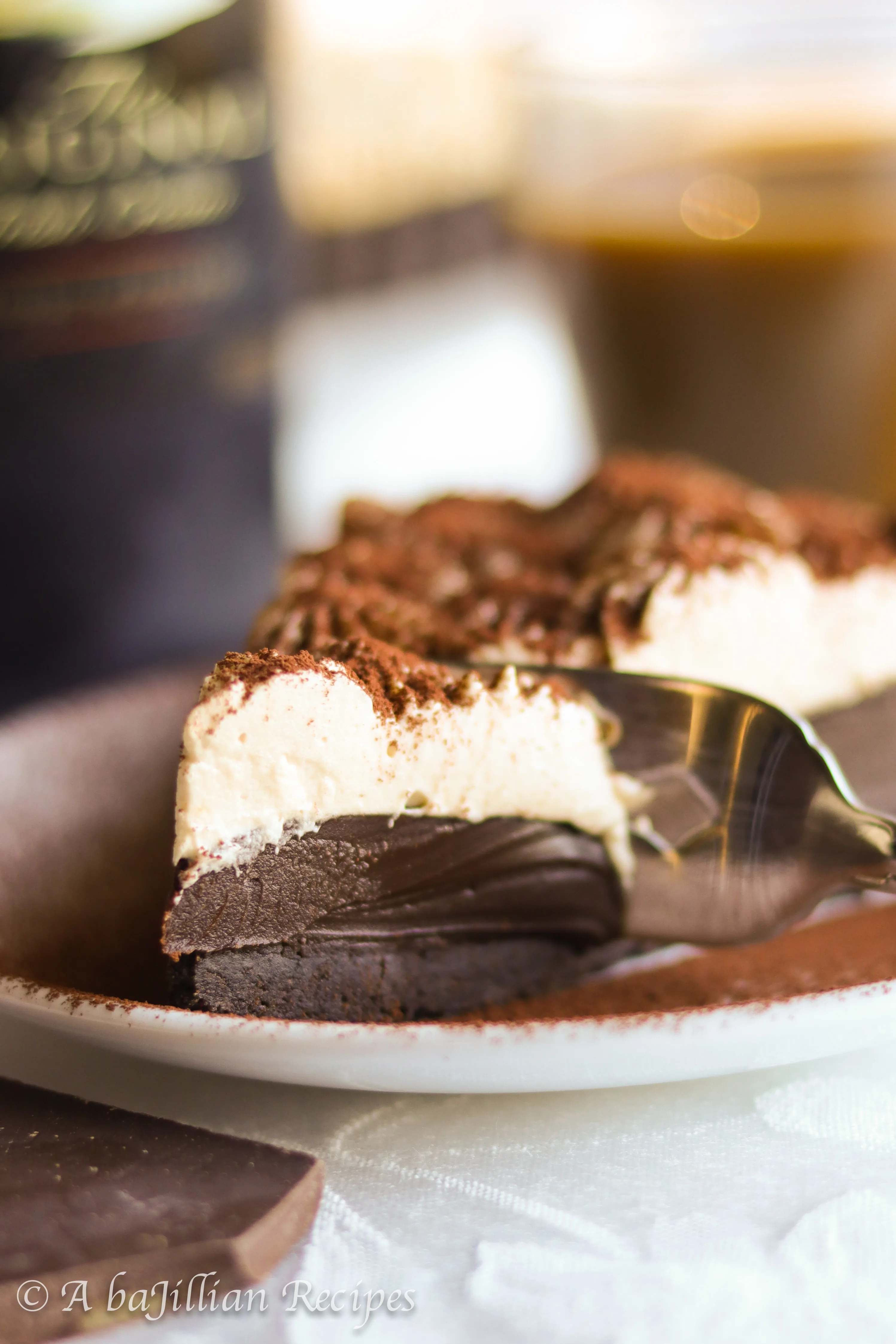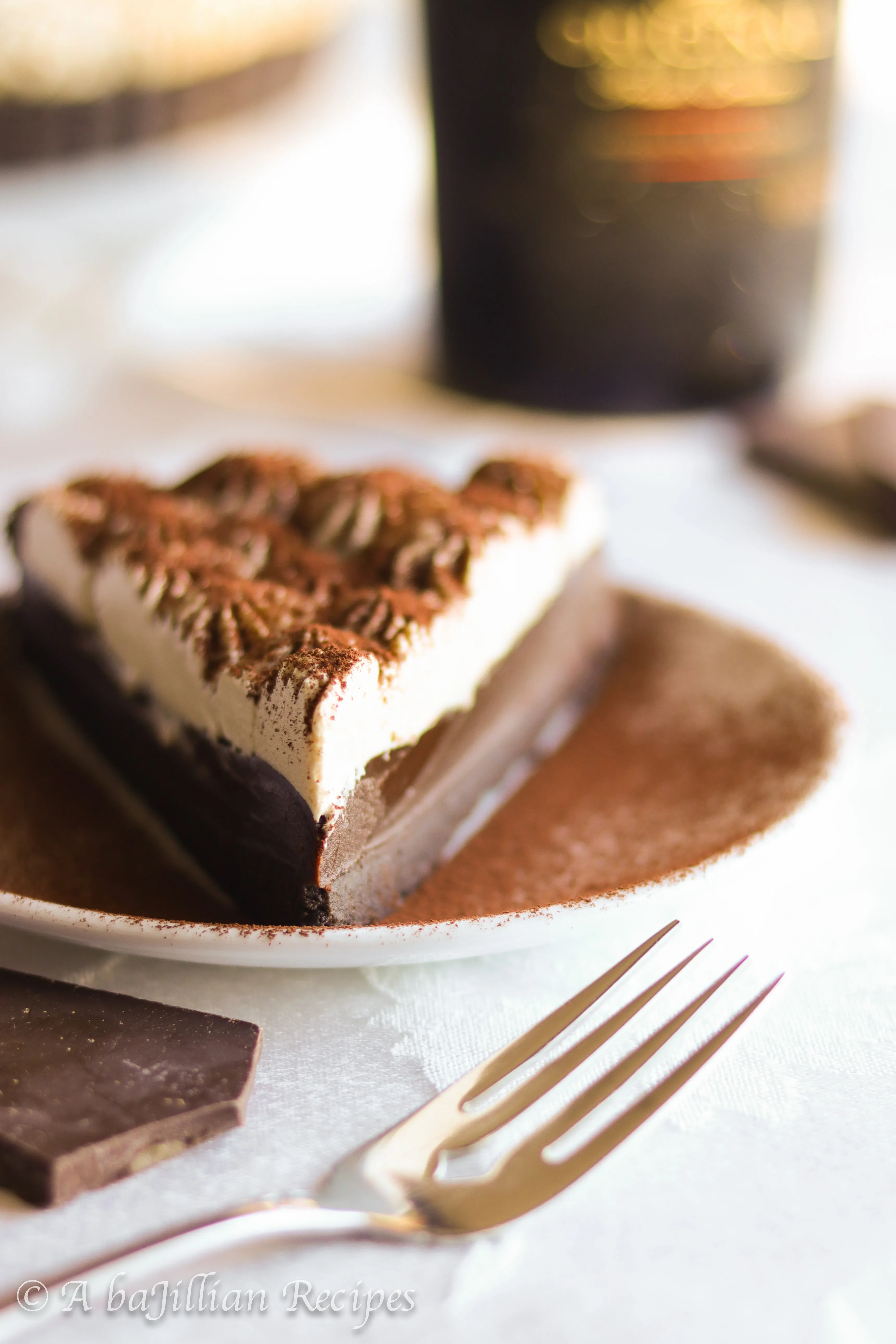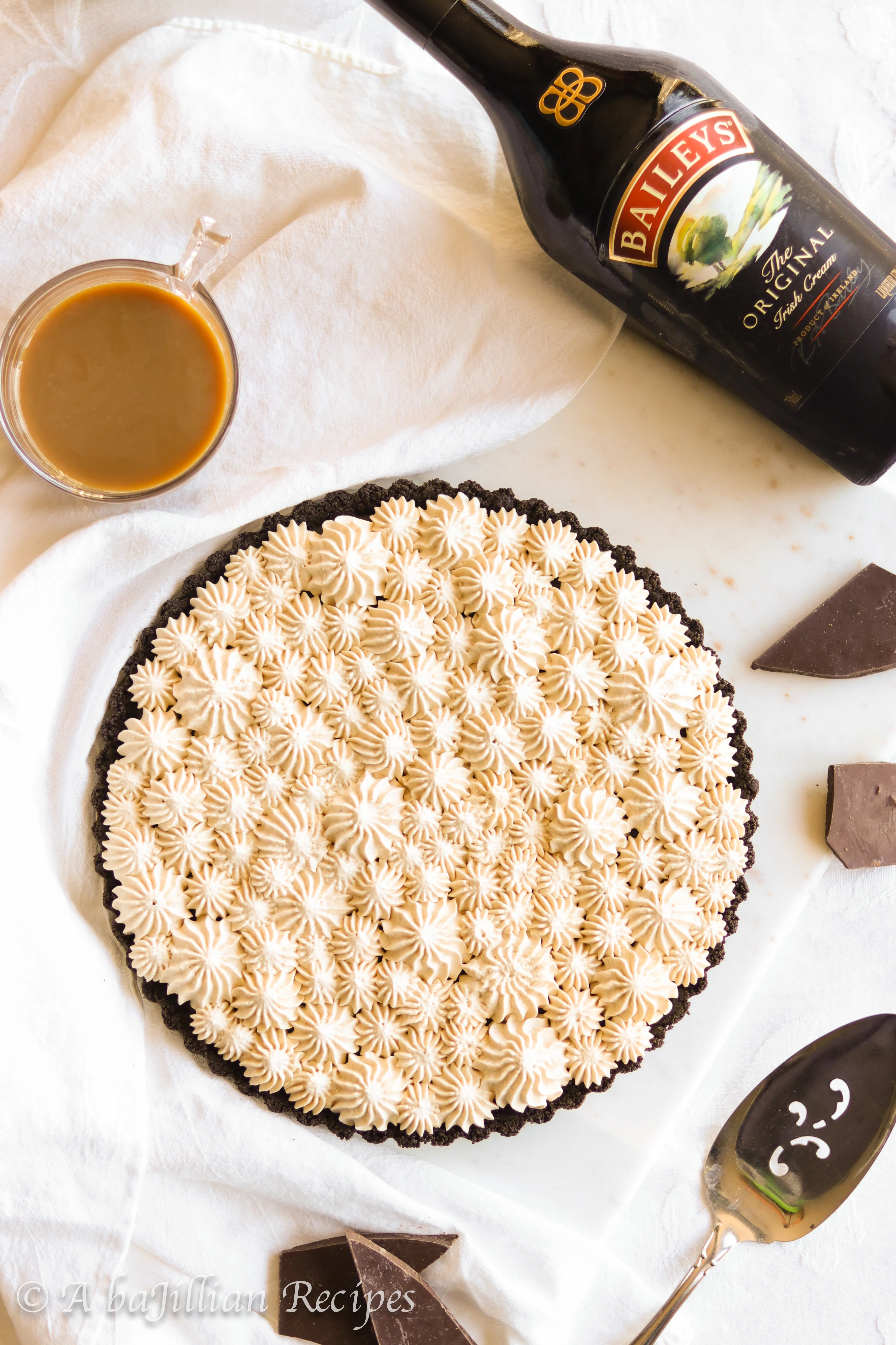 A crispy chocolate cookie crust filled with the most melt-in-your-mouth Irish cream chocolate truffle filling and crowned with a creamy espresso-infused whipped cream!
