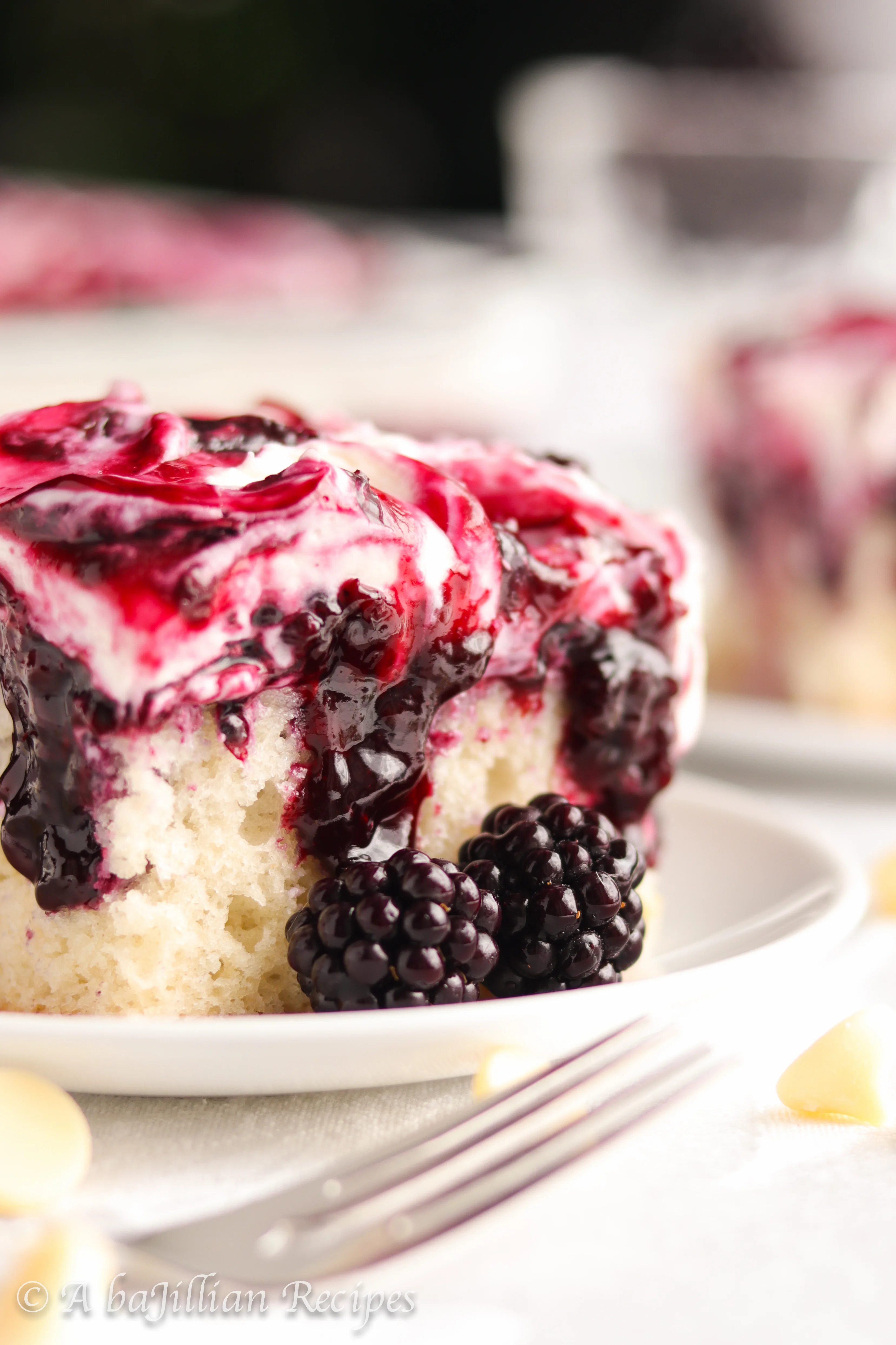 Well, may I suggest this heaven-on-earth White Chocolate Blackberry Poke Cake?
