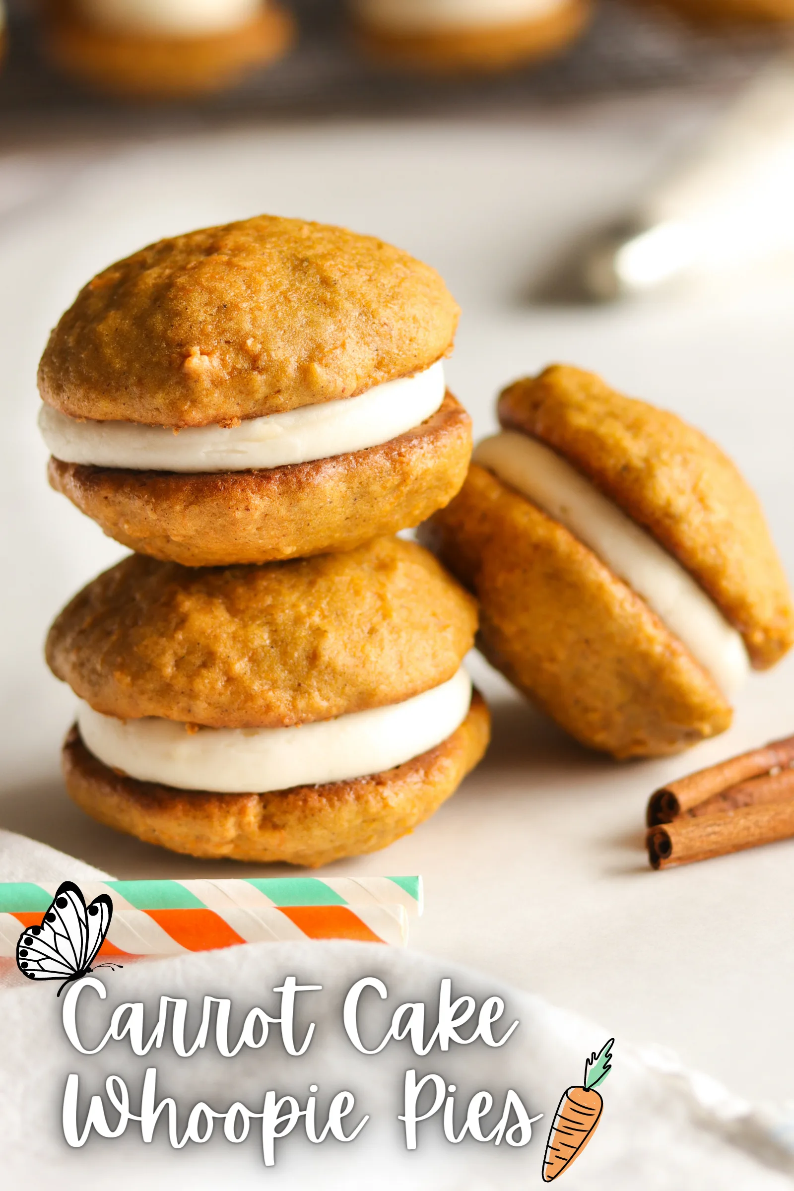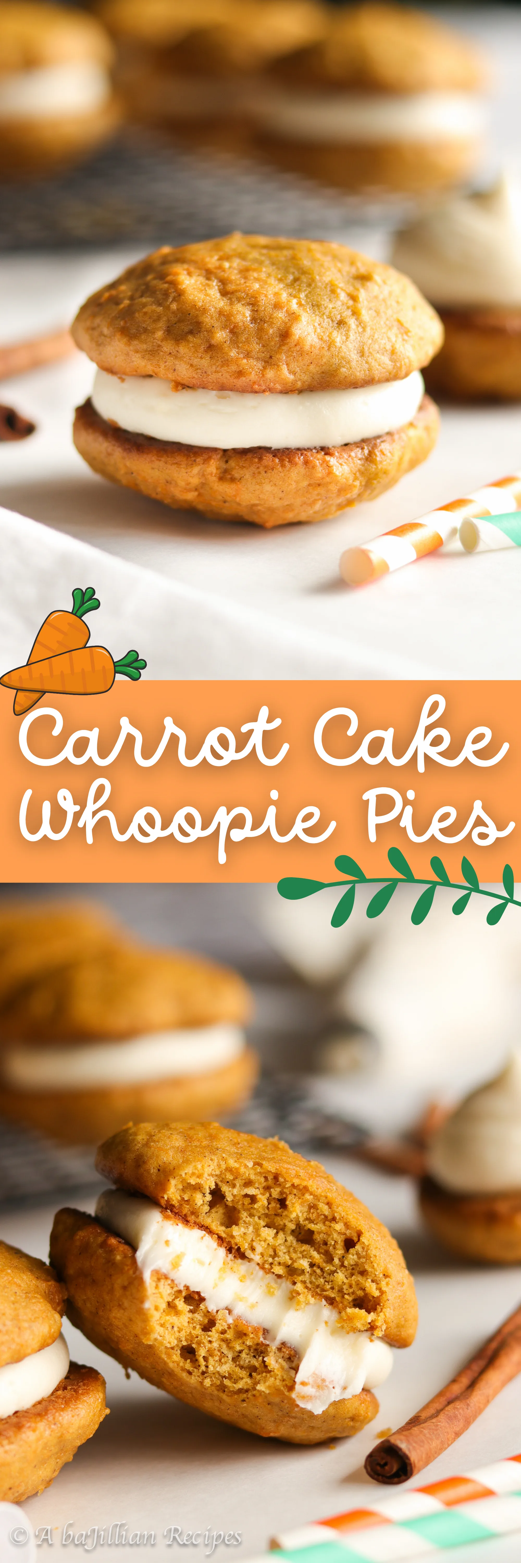 Over the years, I’ve made everything from classic carrot cake and carrot cupcakes to carrot cake blondies and even carrot cake cream pie. In my book, the dessert possibilities are pretty much endless when it comes to carrot cake. So with Easter just around the corner, I decided it was time to combine one of my favorite desserts with my love of whoopie pies!