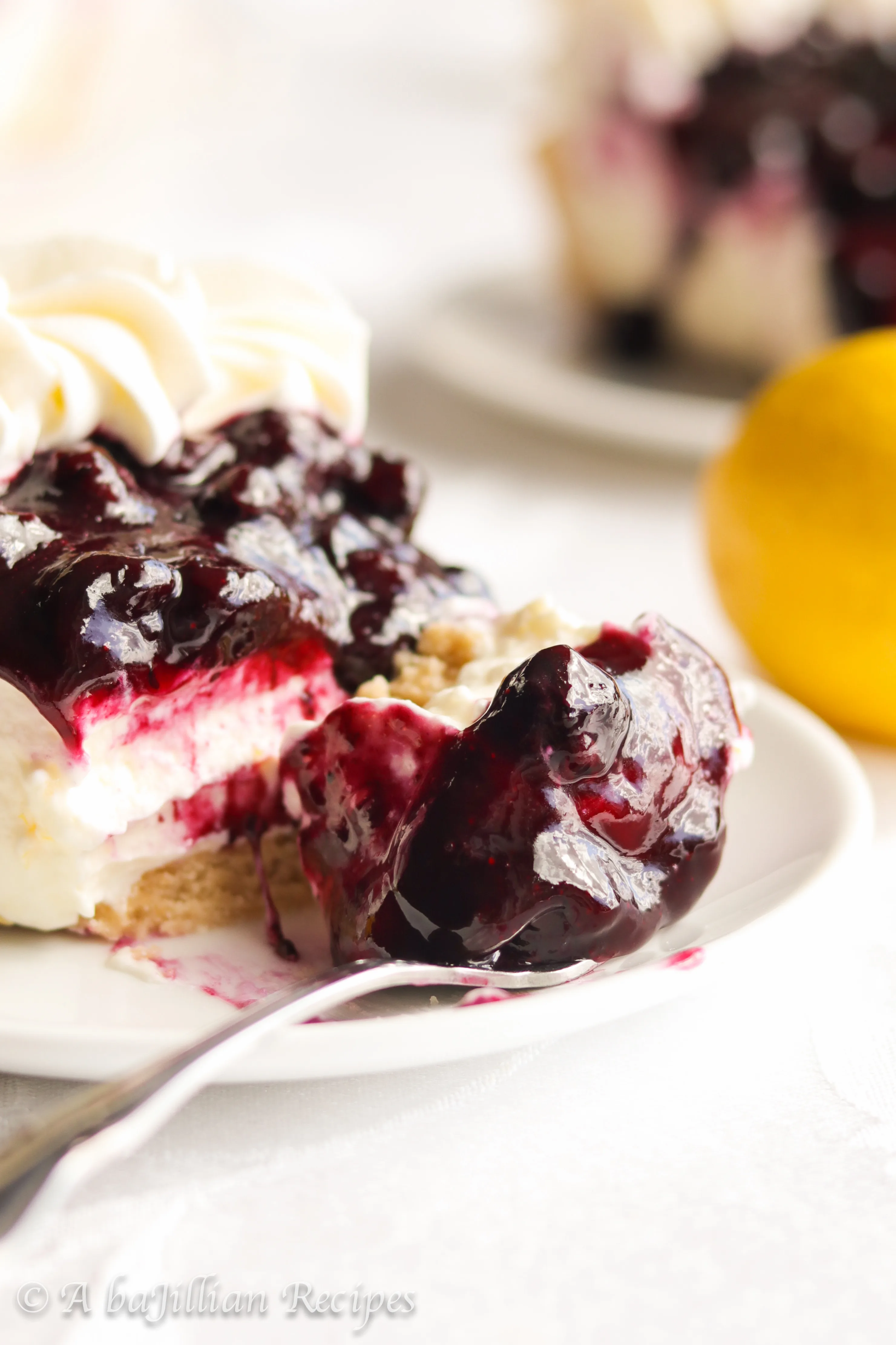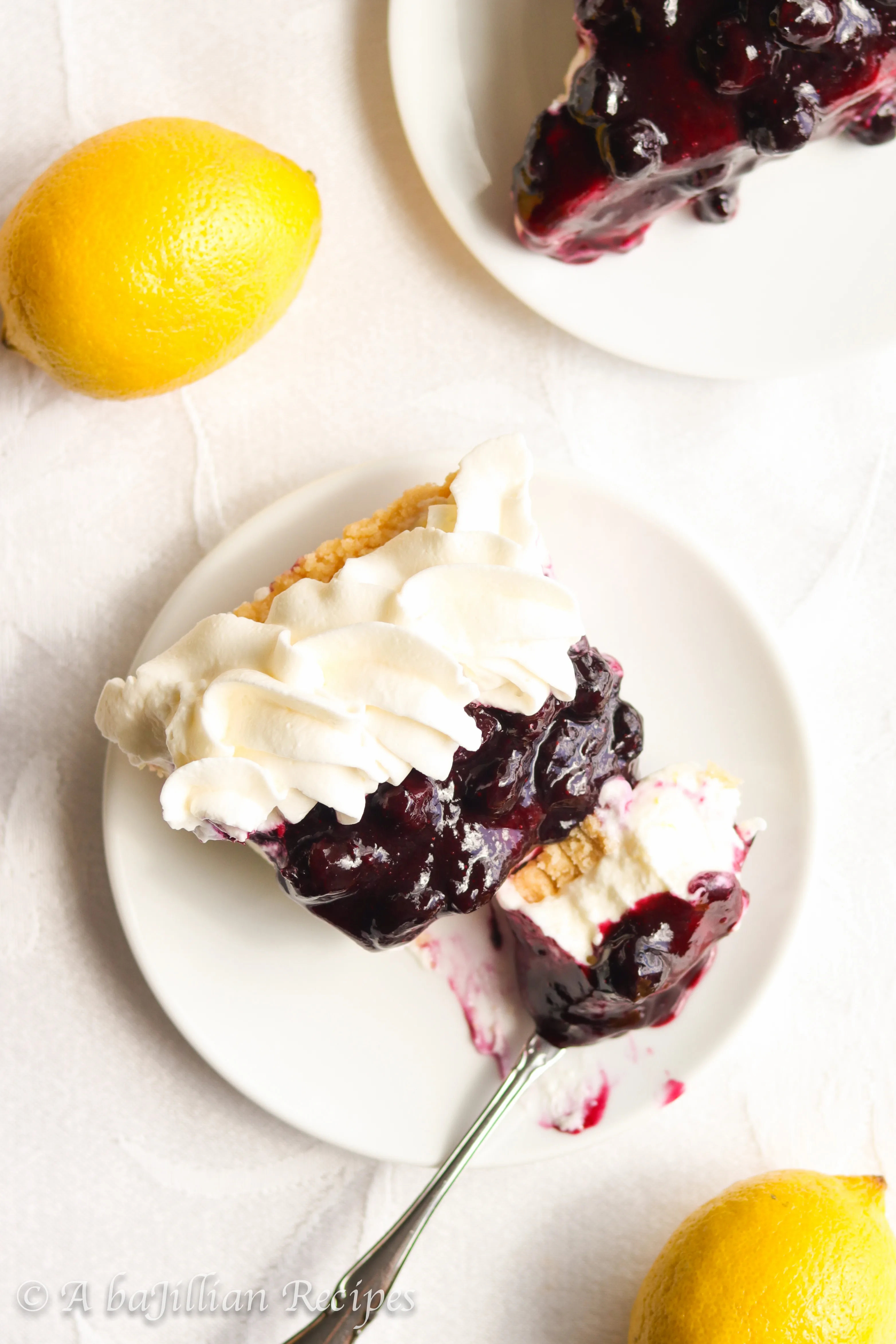 A buttery shortbread cookie crust filled with unbelievably creamy lemon mousse-like filling and topped with a sweet homemade blueberry topping!