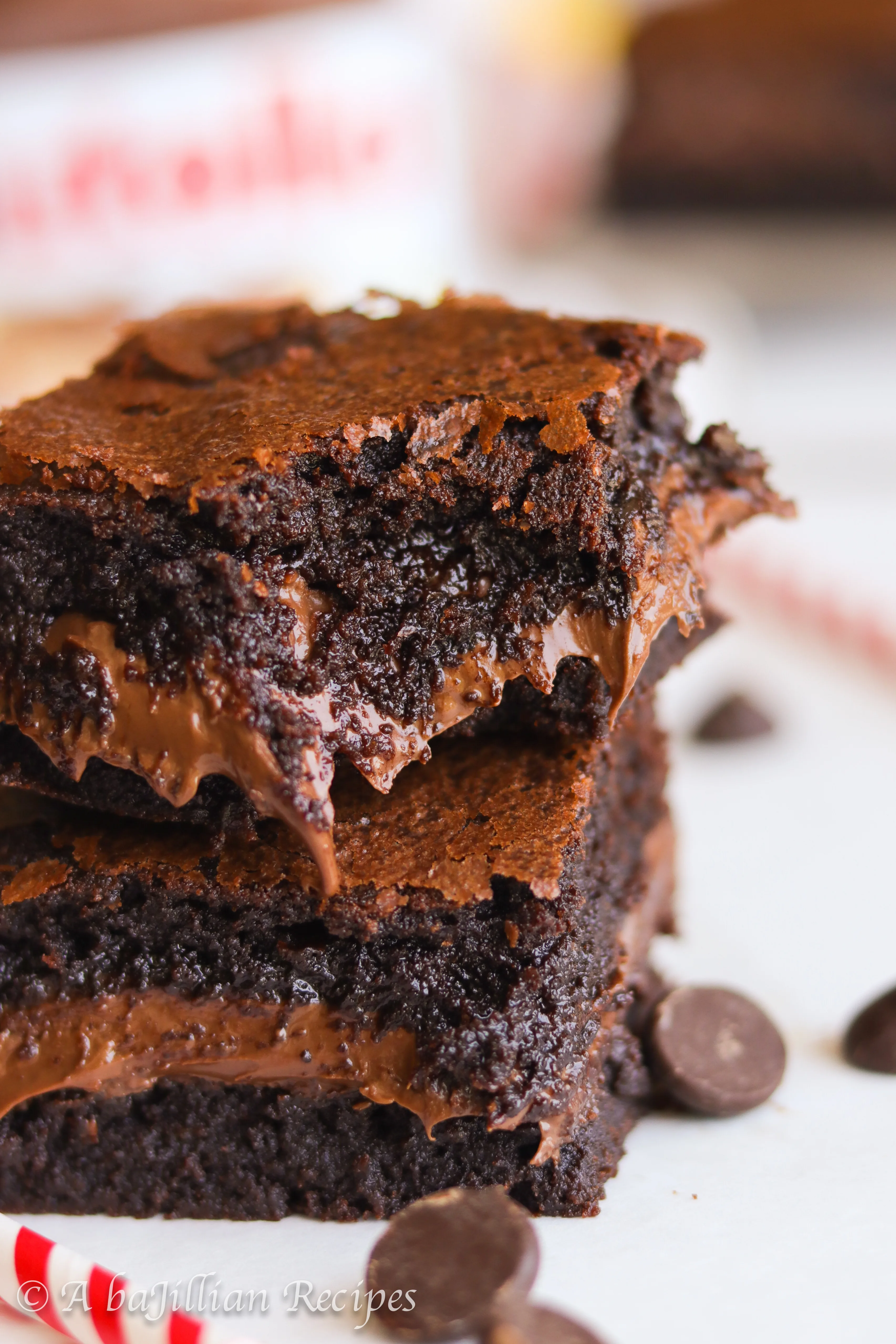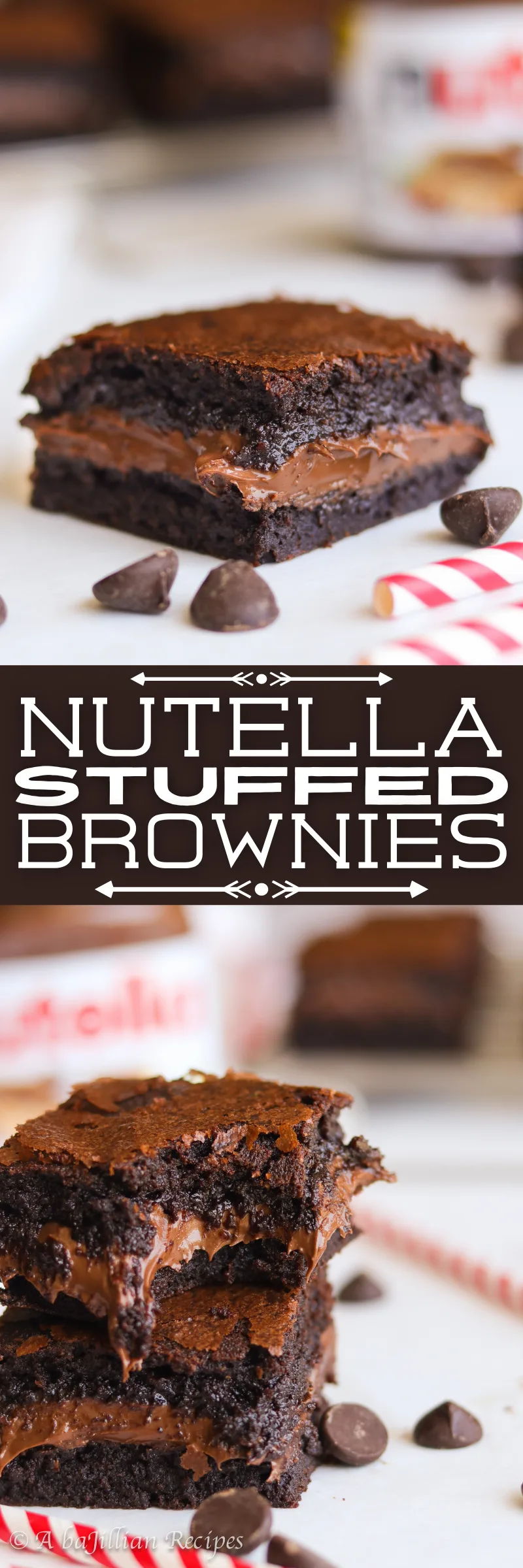 Super duper fudgy brownies stuffed with a generously THICK layer of rich chocolatey Nutella!