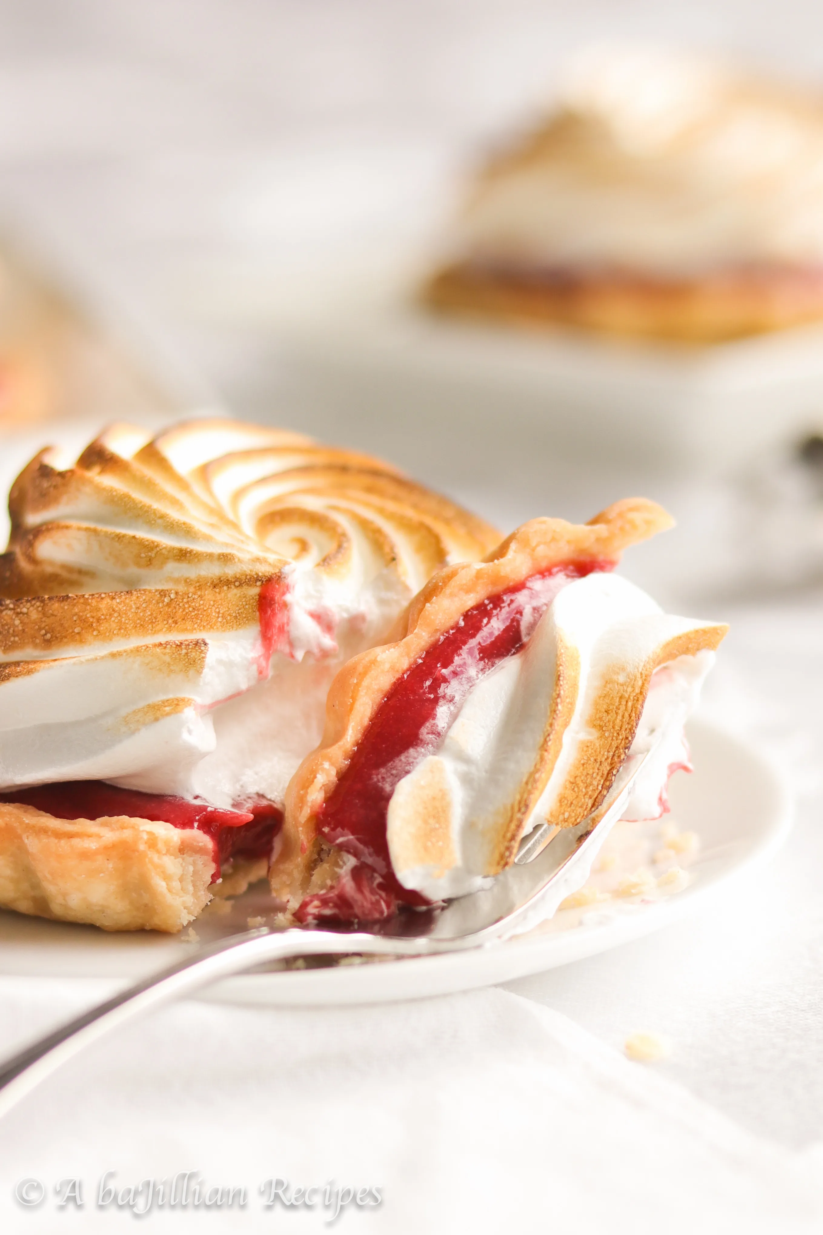 Lusciously tart raspberry curd in a buttery flakey crust and crowned with the fluffiest Italian meringue!