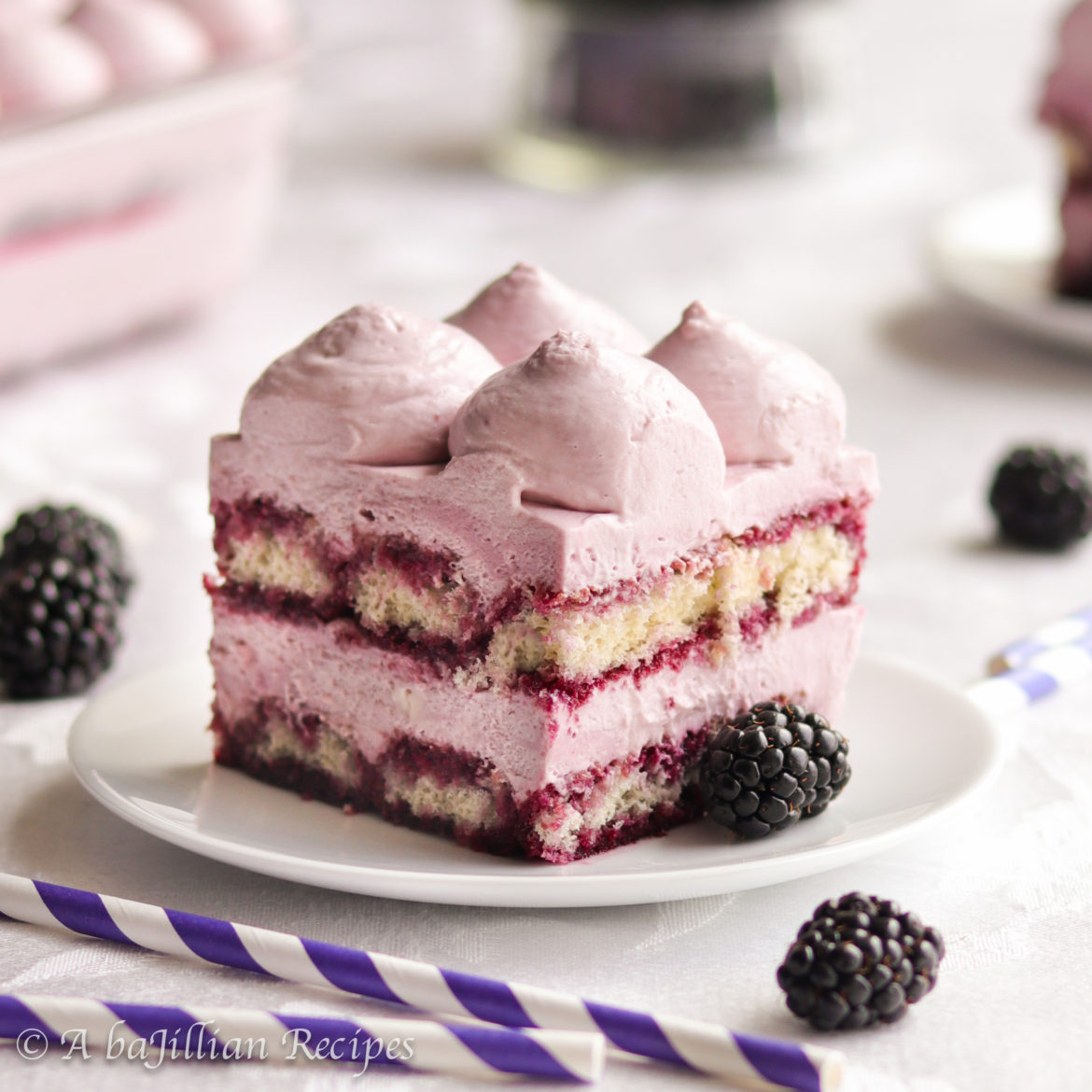 Blackberry-infused ladyfingers and sweet blackberry mascarpone cream filling are layered together in this summery rendition of a classic Italian dessert!