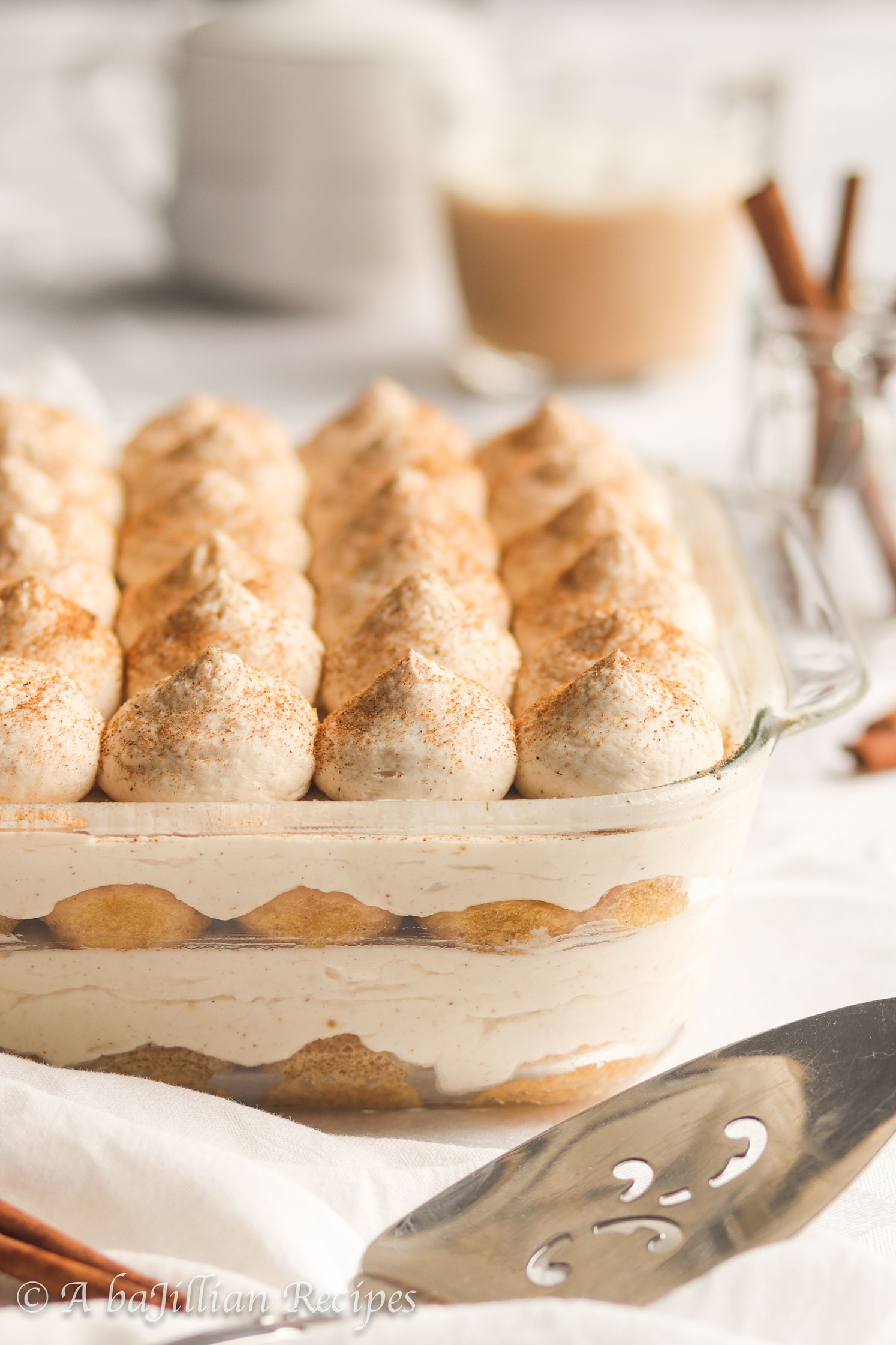 Luscious layers of sweetened chai syrup-soaked ladyfingers and fluffy chai-spiced mascarpone cream filling come together to make an Indian-inspired version of a classic Italian dessert!