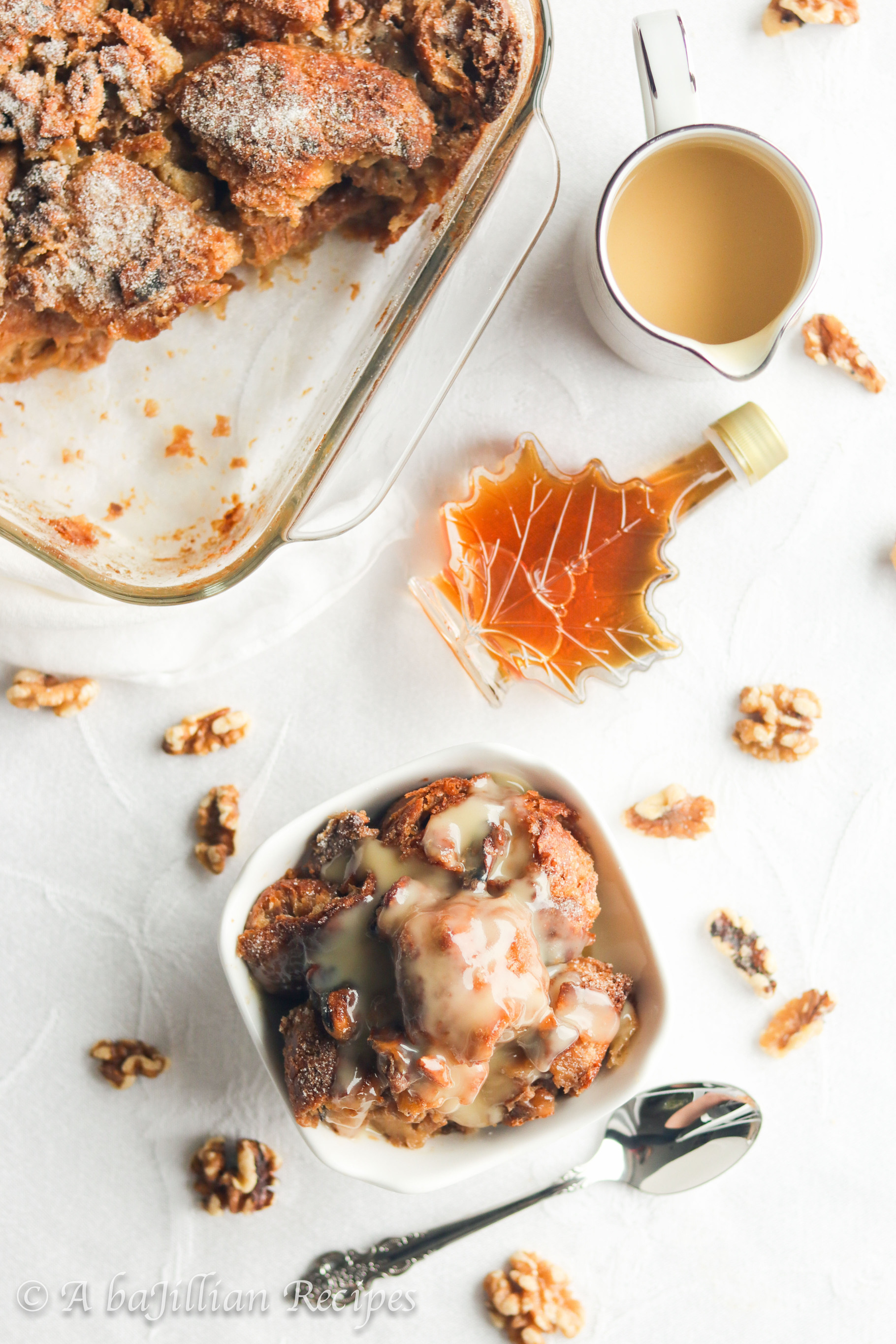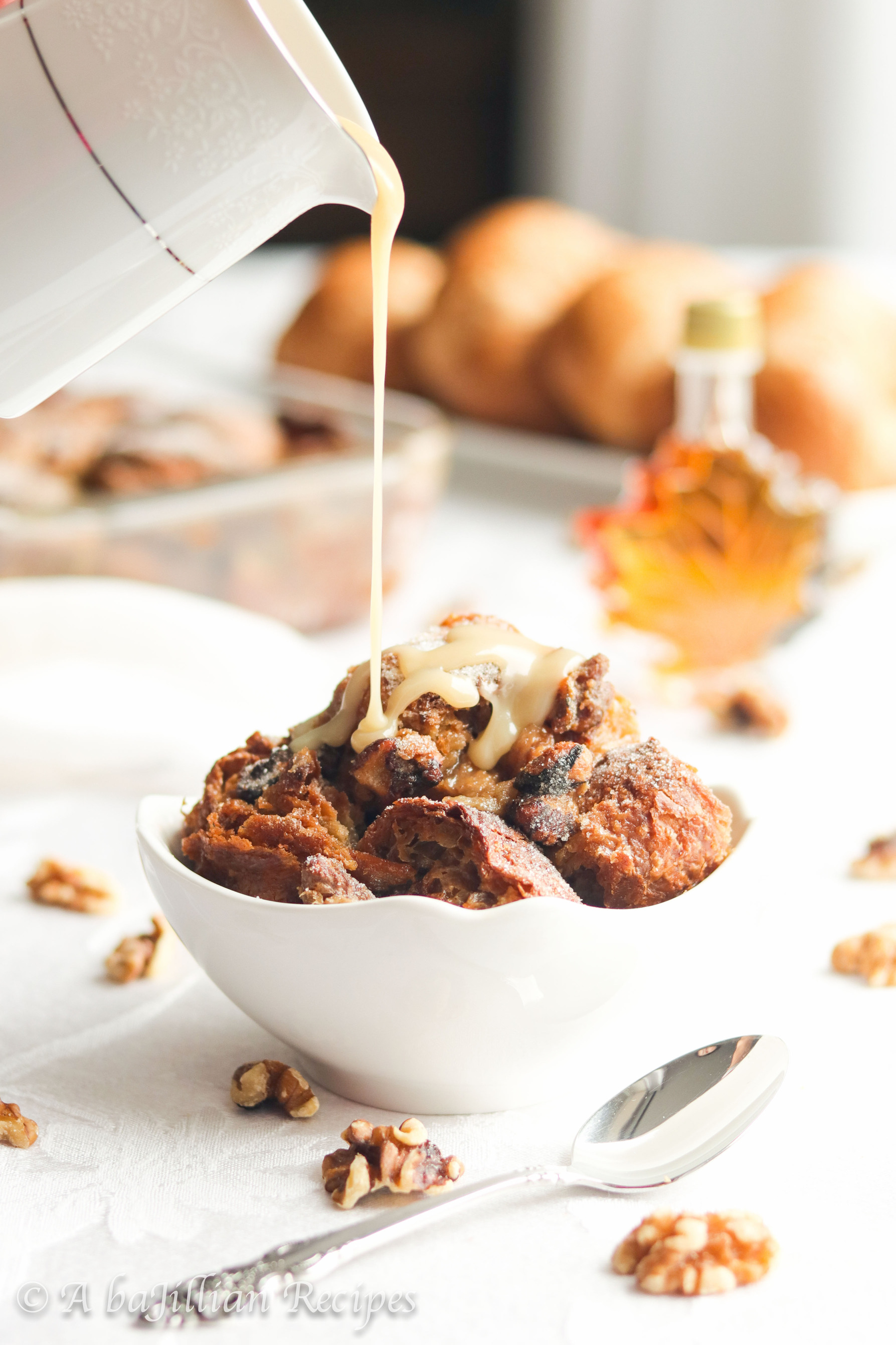 Soft and flakey croissants and toasted walnuts baked in a rich maple custard and drizzled in a luxuriously sinful brown butter maple sauce!