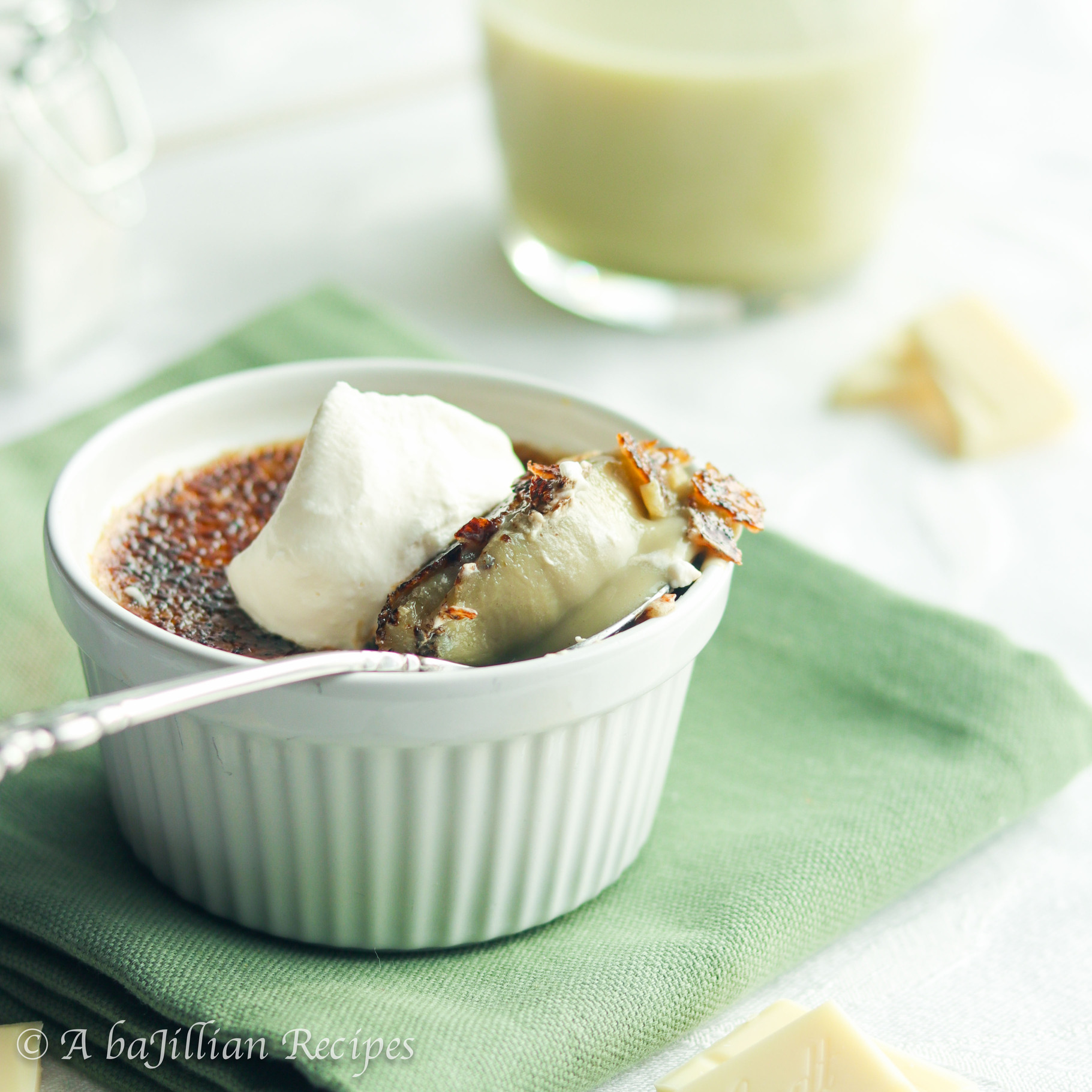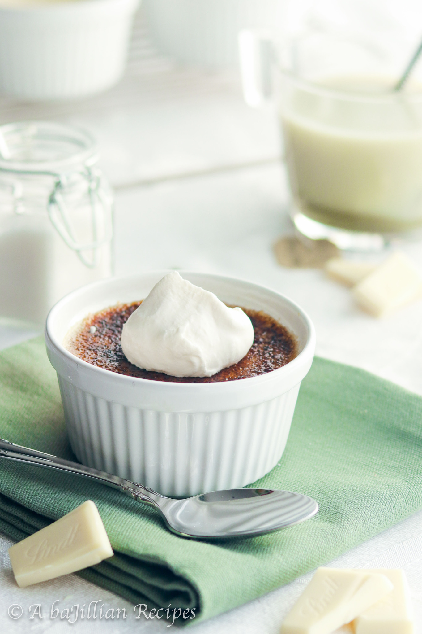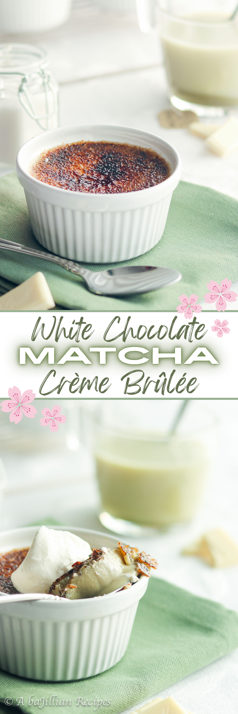 So this week, I decided to blend the earthy notes and nutty flavor of green tea with the sweet richness of white chocolate in this heavenly crème brûlée…
