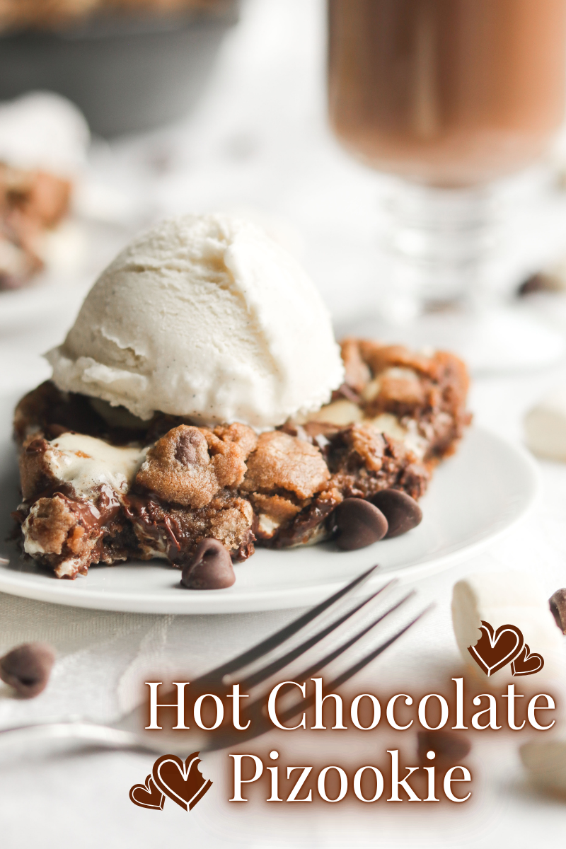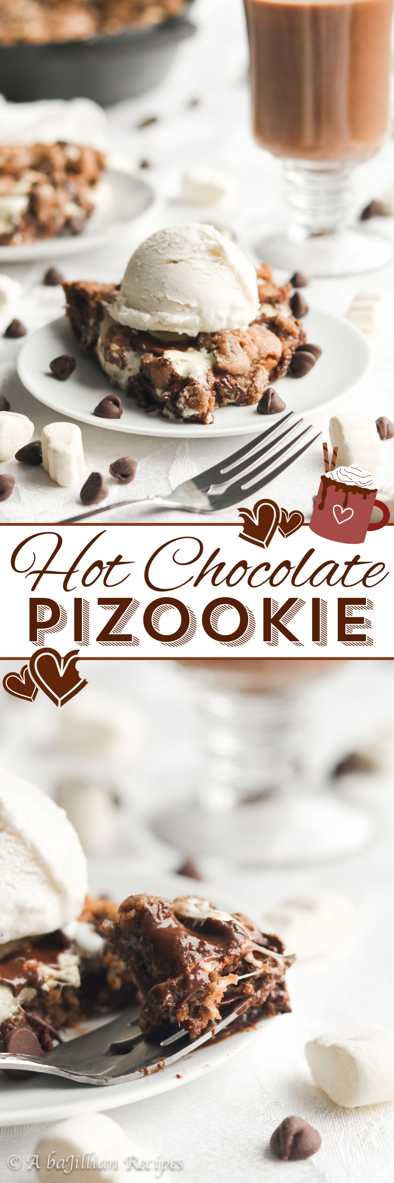 Brimming with Hot Chocolate: A half cup of hot chocolate powder is mixed into the dough to give the pizookie that wonderful milk chocolatey richness reminiscent of a warm cup of hot chocolate.