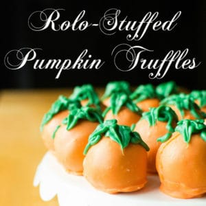 To stuff the truffles, slightly flatten a truffle mound. Place a Rolo in the center, then wrap the truffle dough around the Rolo by sealing the edges. Roll into a ball to "erase" any seams. (See photo above.) Place back on the baking sheet and repeat with the remaining truffles. Freeze balls for 20 minutes.